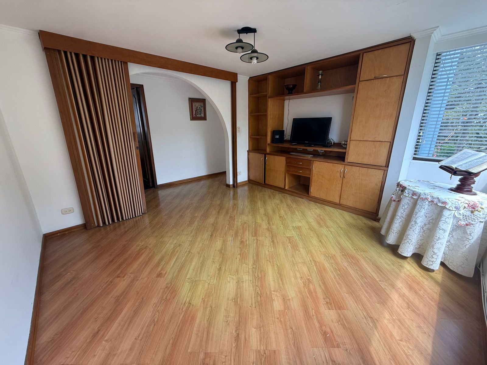 Sala de TV con biblioteca